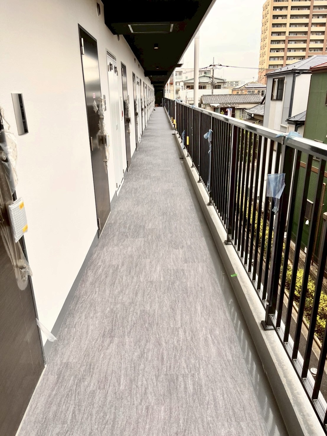外階段と廊下への長尺シート貼りをご紹介いたします。