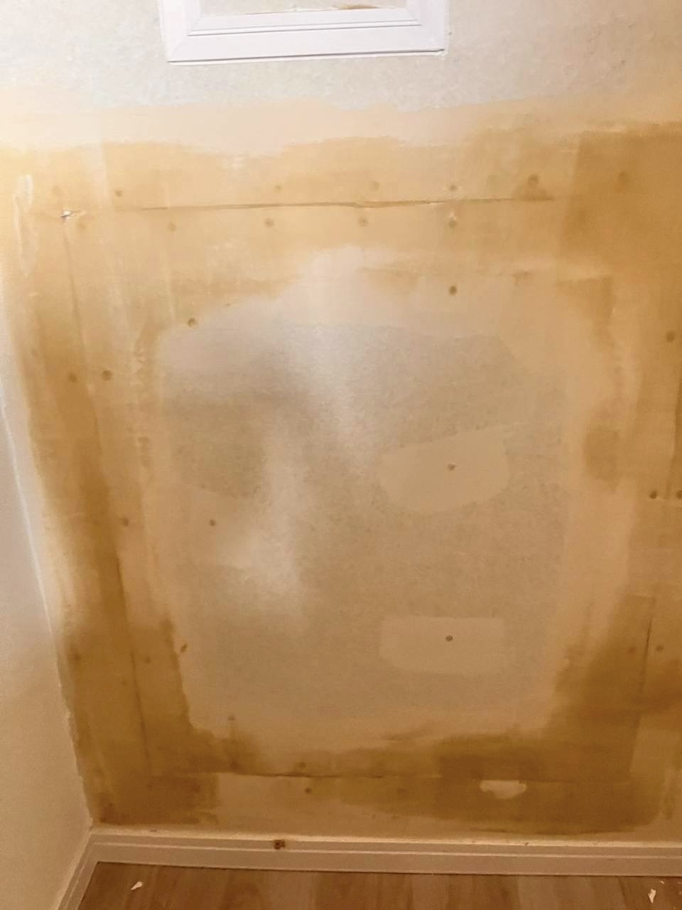 手作り棚を撤去した際の四角い跡やビス止めされた穴跡を、