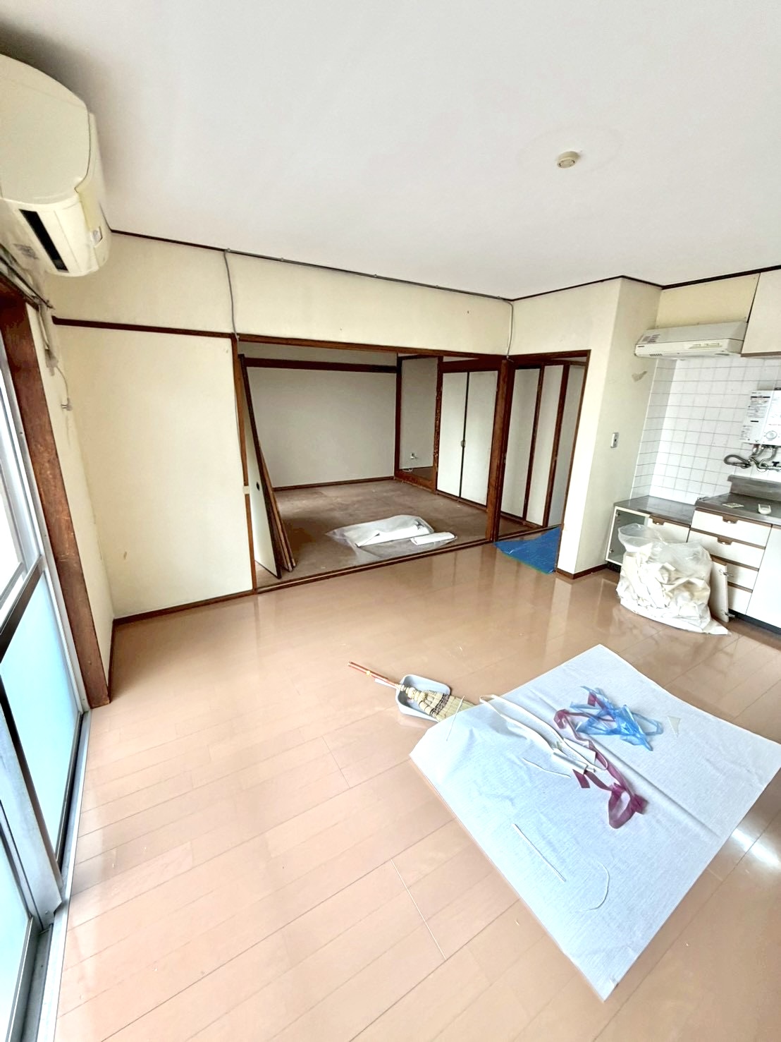 このアイボリー色の壁は、まだクロスを貼っていない状態です⬆️