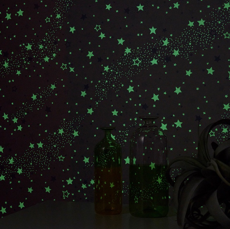 電気を消すと光る「蓄光壁紙」なんです🌟🌠